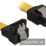 SATA3 kabel DeLOCK, med lås-clips, vinklad nedåt-rak, 50 cm - Gul
