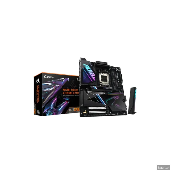 Vi följer 2 aktiva butiker för Gigabyte X870E Aorus X AI TOP. Lägsta noterade pris just nu är 9 849 kr. Senaste uppdatering: 9 apr. 2026 23:15.