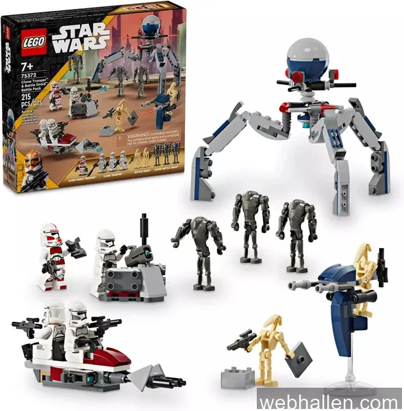 Vi följer 5 aktiva butiker för LEGO Star Wars Clone Trooper & Battle Droid Battle Pack 75372. Lägsta noterade pris just nu är 269 kr. Senaste uppdatering: 11 apr. 2026 14:22.