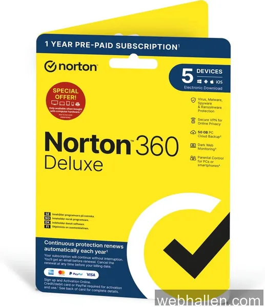 Norton 360 Deluxe - 50GB Lagring / VPN / 1 år / 5 användare - ATTACH