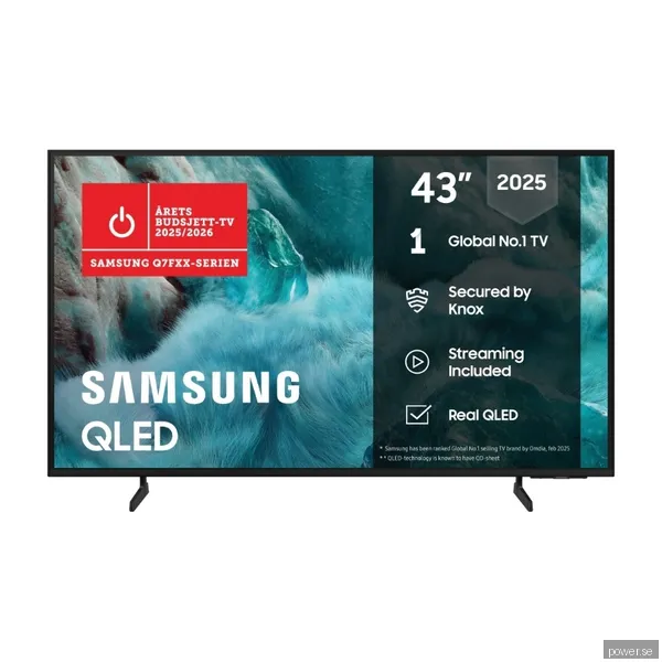 Vi följer 4 aktiva butiker för Samsung 43" Q7FA QLED 4K Smart TV (2025). Lägsta noterade pris just nu är 4 330 kr. Senaste uppdatering: 11 apr. 2026 18:28.