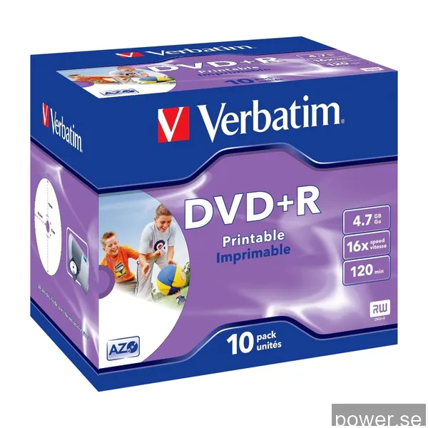 DVD+R media Verbatim 4.7 GB 16X, printable, 10-pack jewel case