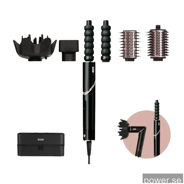 Borstar och verktyg som ingårOval borste, Höger automatisk inlindningsfat, Vänster automatisk inlindningsfat, Spridare, Paddelborste, Koncentrationsmunstycke