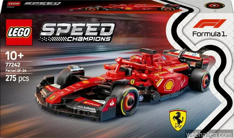 Vi följer 4 aktiva butiker för LEGO Speed Champions Ferrari SF-24 F1 racerbil 77242. Lägsta noterade pris just nu är 269 kr. Senaste uppdatering: 11 apr. 2026 14:56.