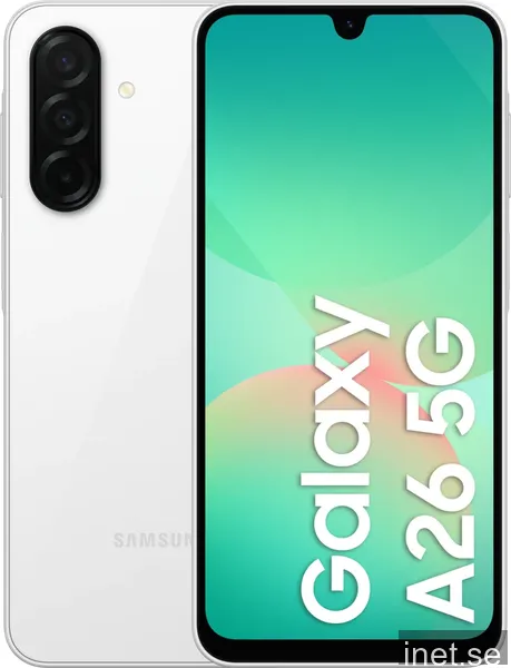 Vi följer 4 aktiva butiker för Samsung Galaxy A26 5G 128 GB, vit. Lägsta noterade pris just nu är 3 689 kr. Senaste uppdatering: 11 apr. 2026 15:46.
