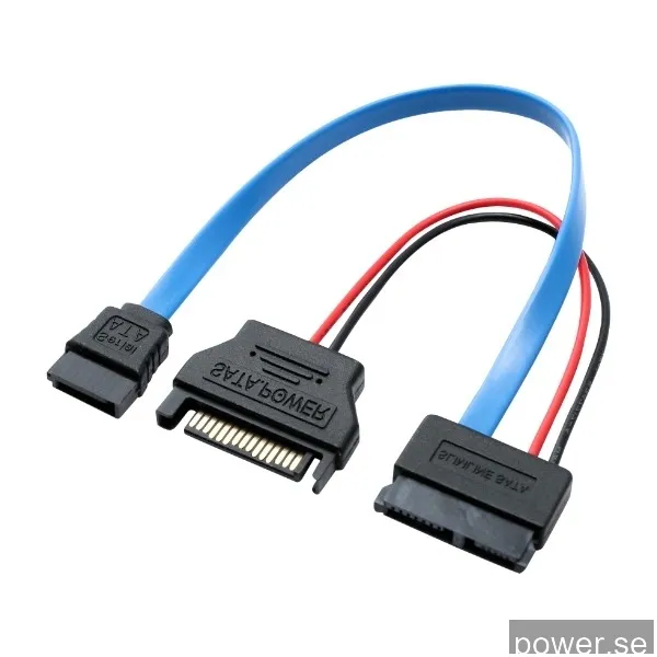 Eletra Mini Sata 7+15PIN F- Sata 7P F+Sata 15 M 20+15CM kabel Platt, blå