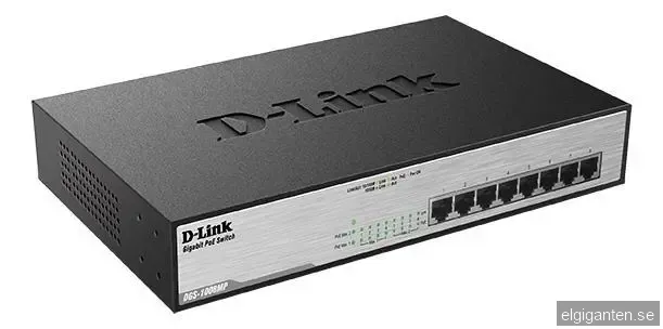 D-Link PoE nätverksswitch, 8-ports, 10/100/1000Mbps, metalhölje, grå