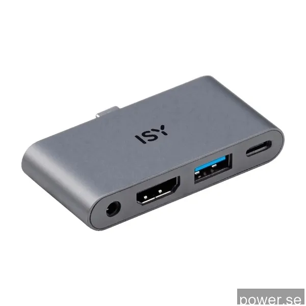 ISY Iad-1019 4-I-1 USB-C adapter med Powedelivery, silver