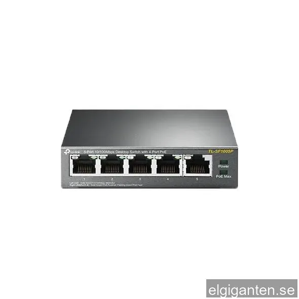 TP-Link Skrivbordsswitch, 4-portar, PoE, 100 Mbps, 58W, svart