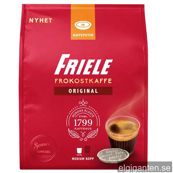 Vi följer 1 aktiv butik för Friele Standard kaffepads (36 stk). Lägsta noterade pris just nu är 79 kr. Senaste uppdatering: 26 mars 2026 08:28.