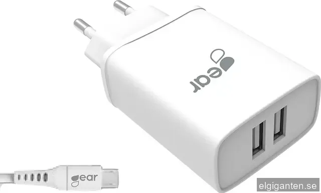 Gear 220V MicroUSB dubbel väggladdare 665094