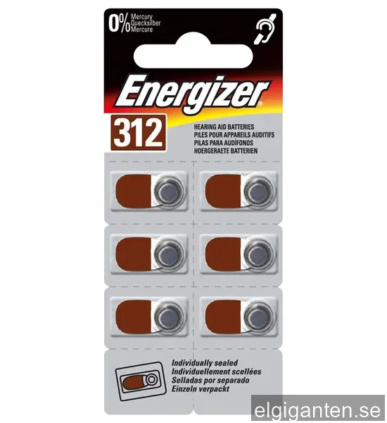 Energizer Batterier till hörapparat AC312E (6 st)
