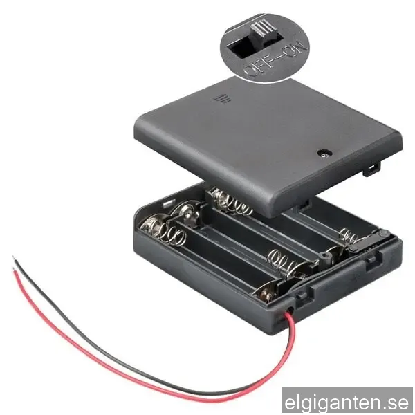 Batterihållare med strömsladd - För 4st AA batteri