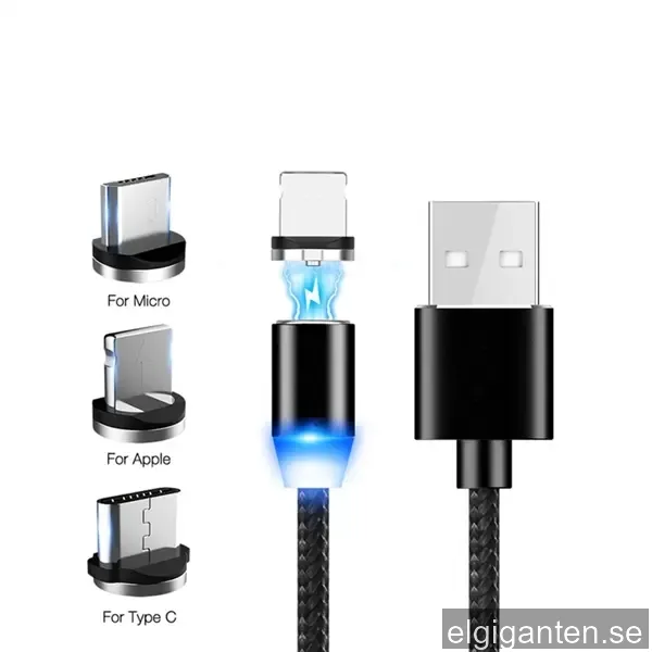 Magnetisk laddkabel till Mobiltelefon - iPhone + Micro-Usb + Usb Typ-C, 1m